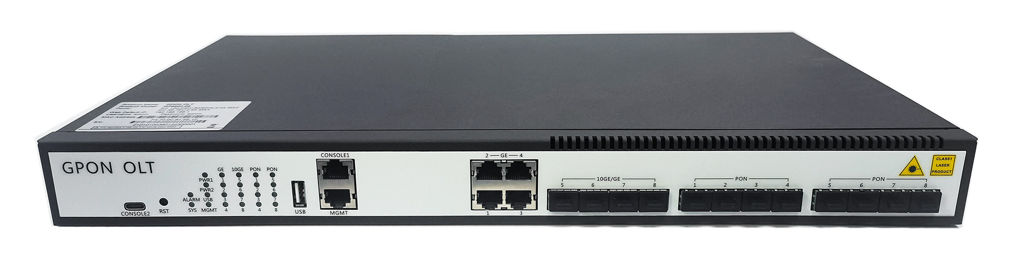 8 PON Ports GPon OLT 4*10GE/GE SFP+ 4*1GE RJ45 Uplink Port Dual power with optional