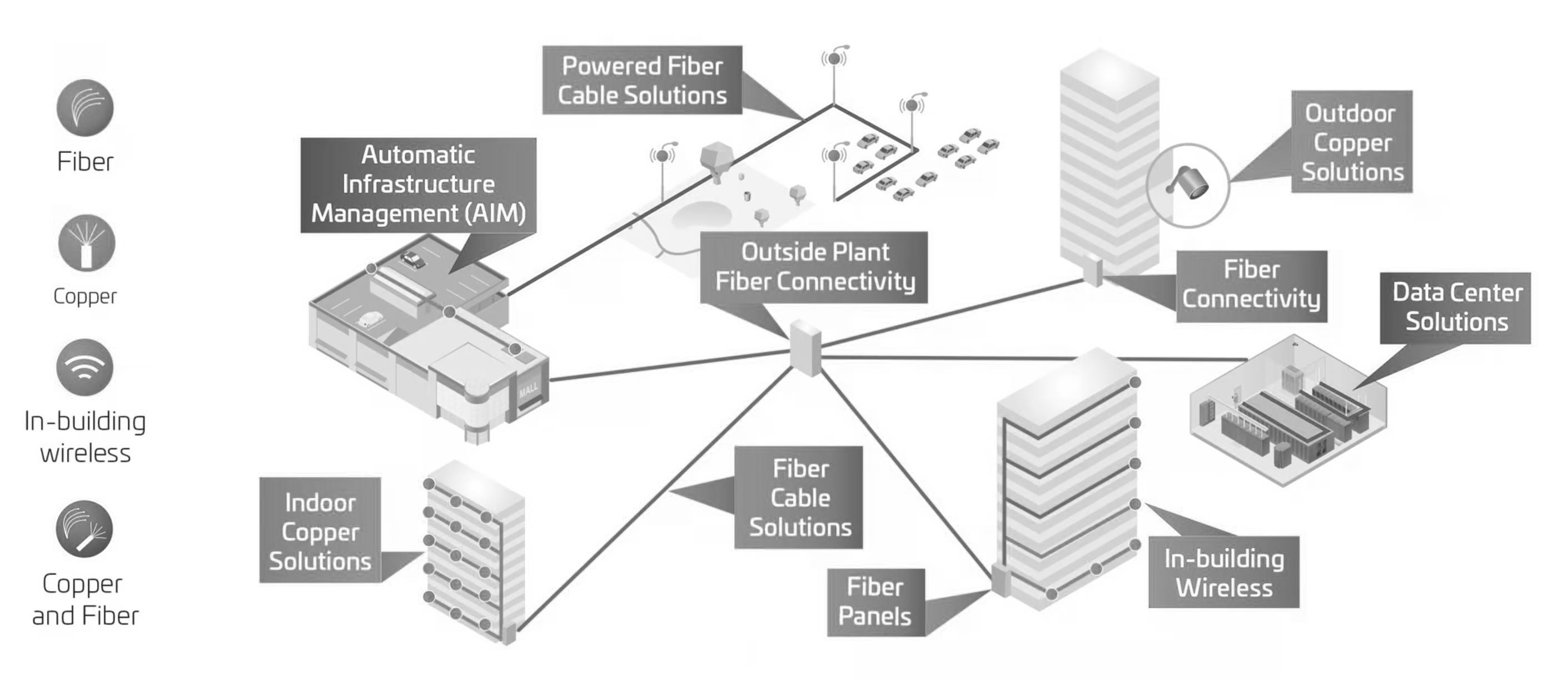 • Transmission medium: Optical fiber, usually buried underground or mounted on walls.